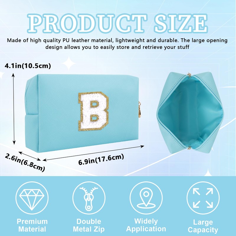 - 【High Quality Material】Initial Letter Patch Makeup Bag is 7in x 4.3in x 2.3inches. Made of high quality PU leather material, lightweight and durable. The large opening design allows you to easily store and retrieve your stuff. Ideal as a makeup bag for travel, gym, bathroom, daily carry-on bag and luggage.