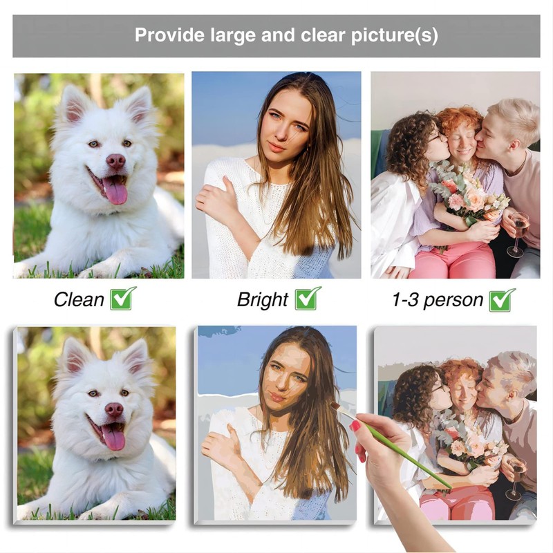 Personalized Paint by Numbers Kit for Adults Beginners, Acrylic Painting Oil Painting Canvas, Customized DIY Paint by Numbers Set for Art Crafts Gift Pets Lover Family (No Frame, 12x12inch/30x30cm)