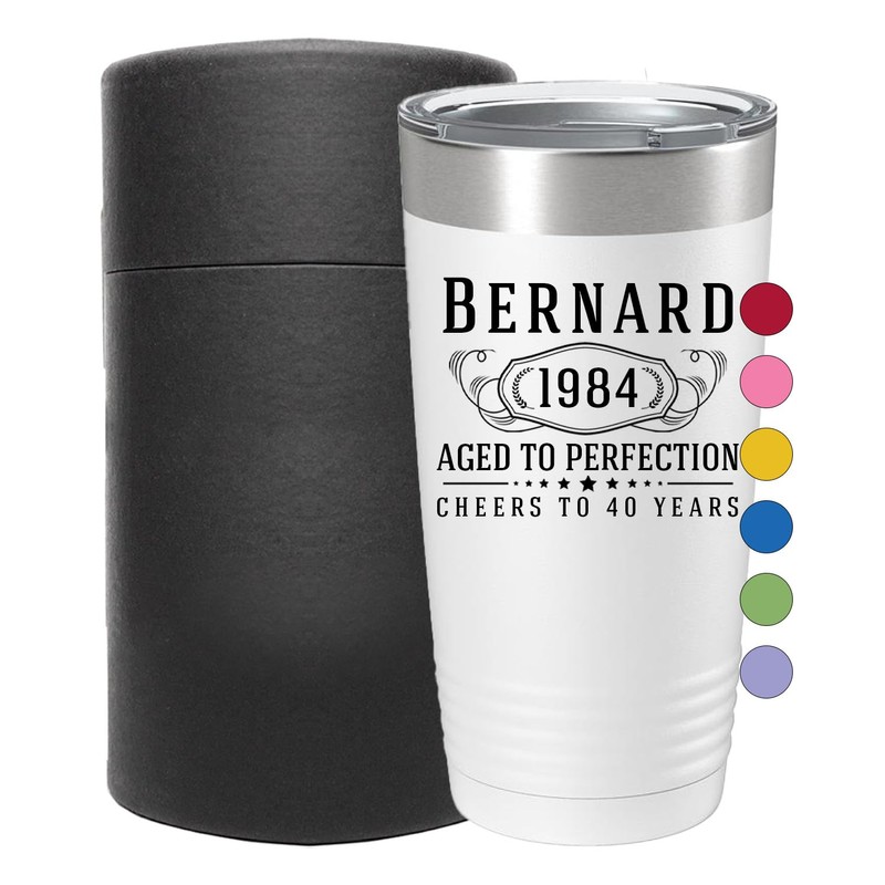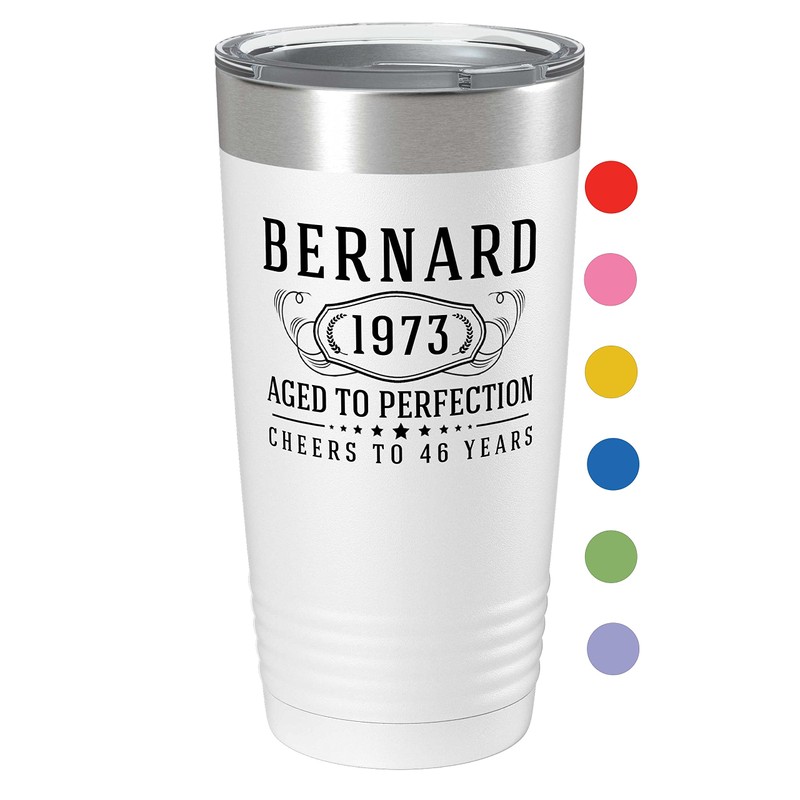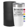 Personalized Printed 20oz Powder Coated Tumbler with Lid, Custom Printed, White, Bernard