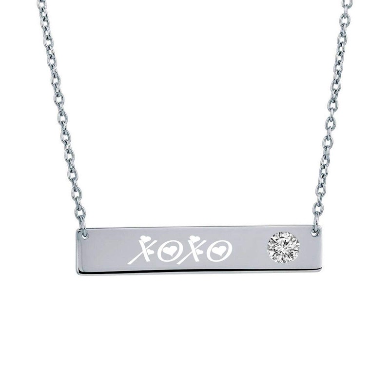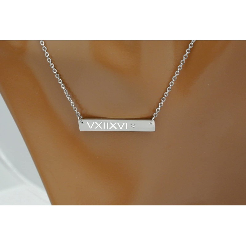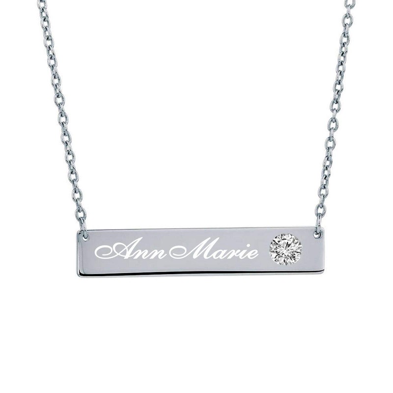 Personalized Silver CZ Stone Horizontal Name Bar Nameplate Necklace Pendant Engraved Free - Ships from USA