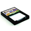 Looks great and is useful on a desk, as well as a kitchen counter! Made of durable black plastic, this memo pad holder is complete with 100 sheets of standard 4â x 6â paper. Paper refills are available through Printed Perfection or any office supply.