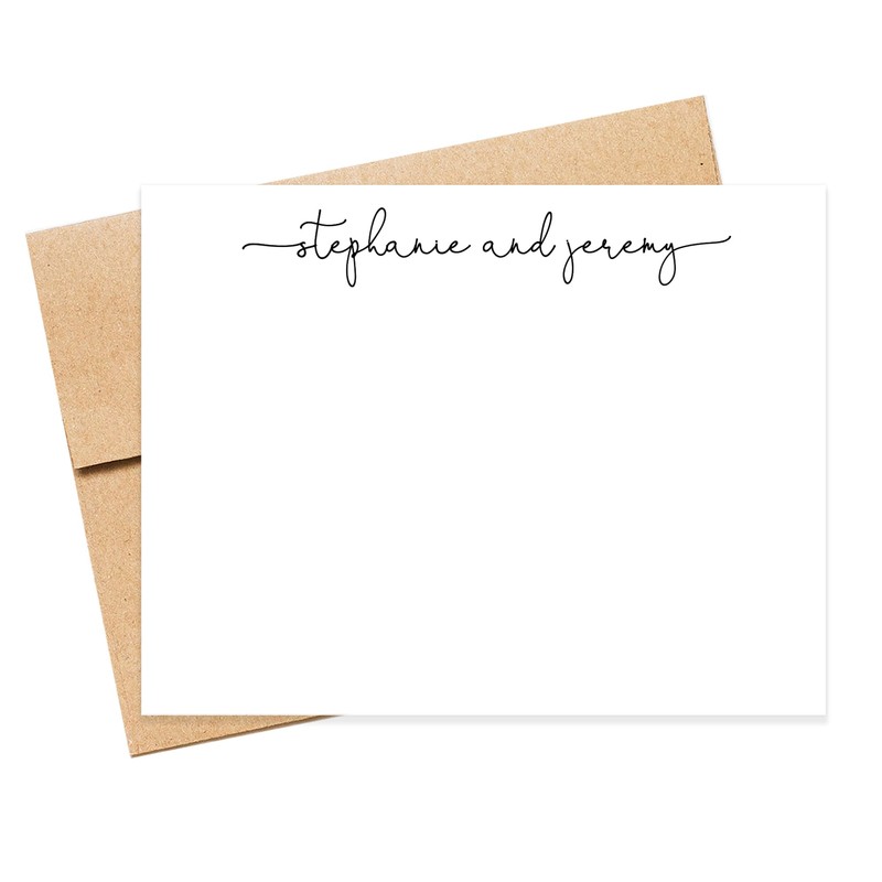 Personalized Stationary Note Cards with Envelopes, Script Personalized Cards Set for Couples, Flat Notecards Set