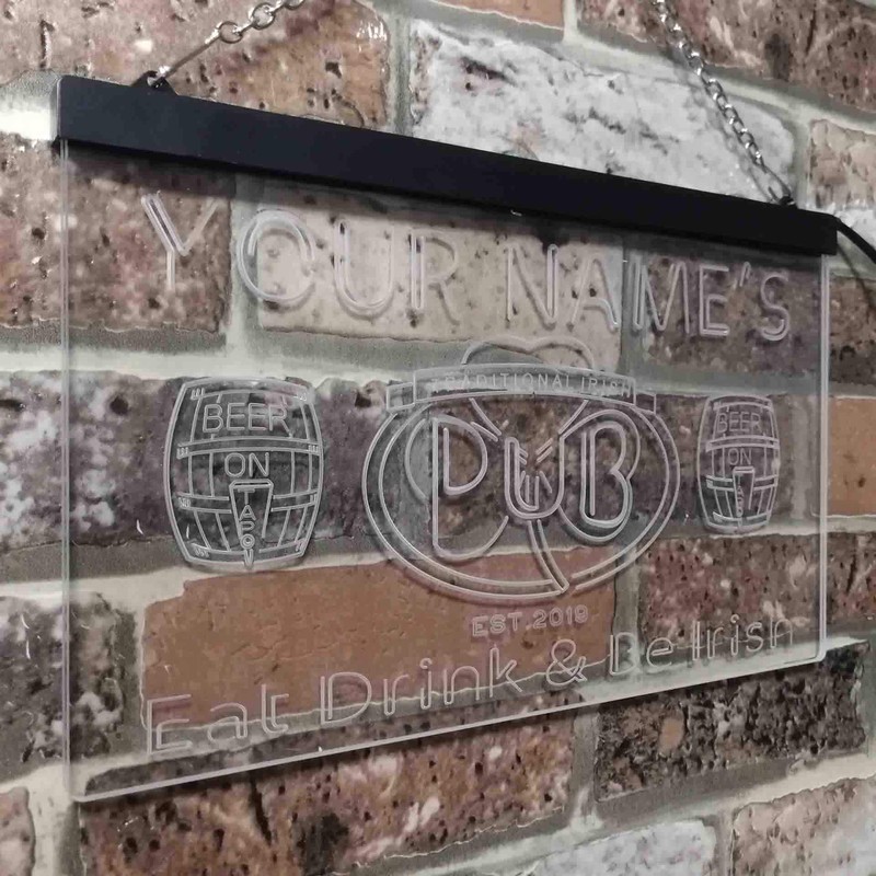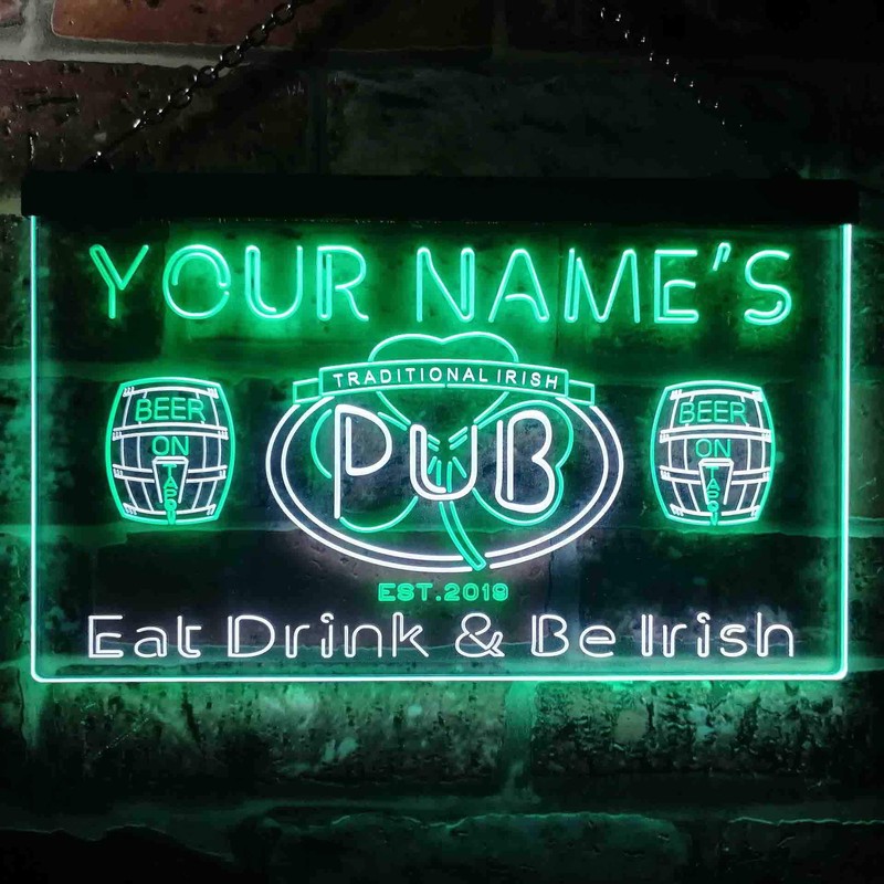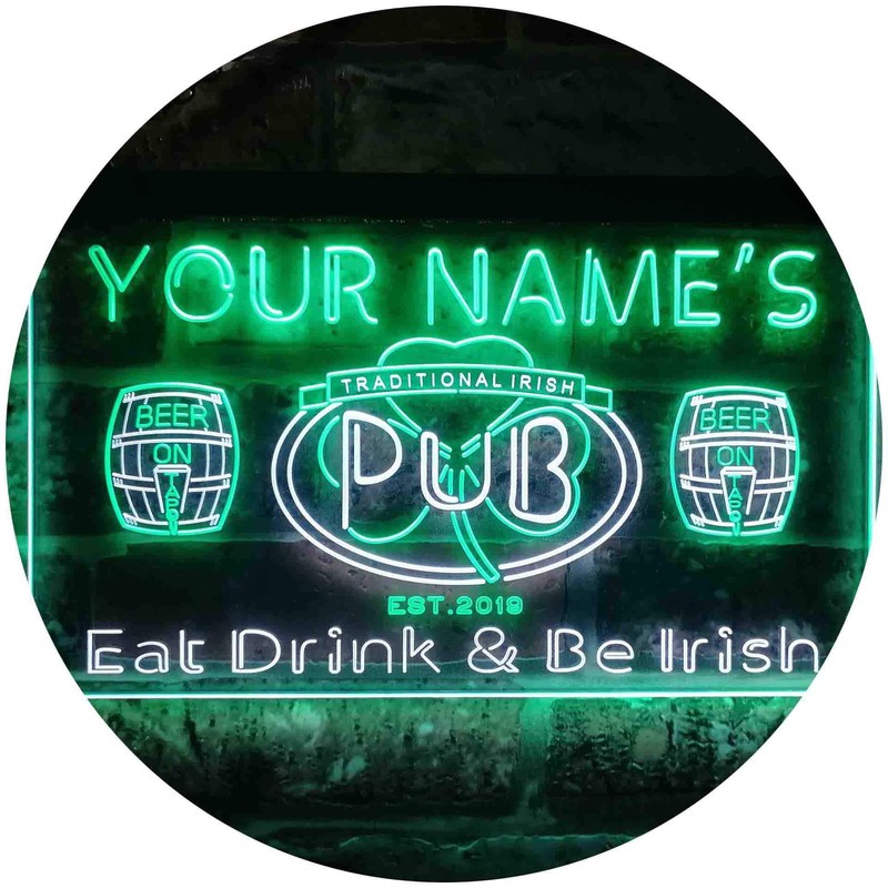 Personalized Your Name Est Year Theme Irish Pub Dual Color LED Neon Sign White & Green 12" x 8.5" st6s32-pa1-tm-wg