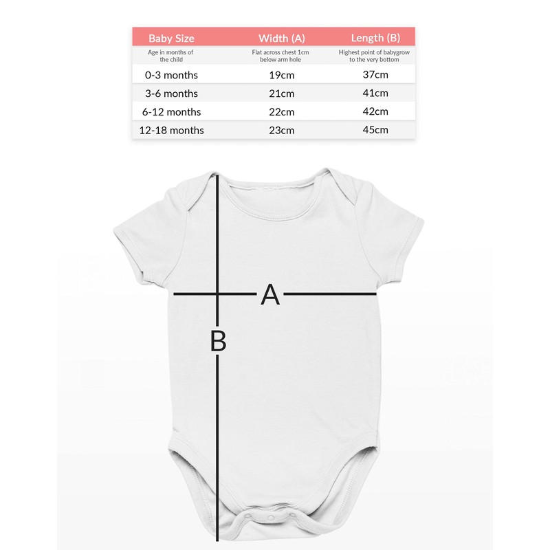 This super cute design is professionally printed on to a soft cotton baby grow available in a range of colours and sizes. Please check out our size guide to help you choose the best size for your babygrow, if you need any help with this then we are happy to help.