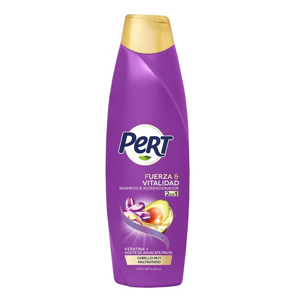 PERT, Shampoo 2 en 1 Keratina y Aguacate, limpia y desenreda | Cabello fuerte, flexible y resistente, 650 ml