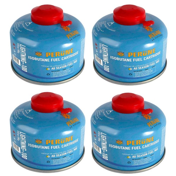 Perune Iso-Butane Camping Fuel Gas Canister All Season Mix - 100gram (4 Pack)