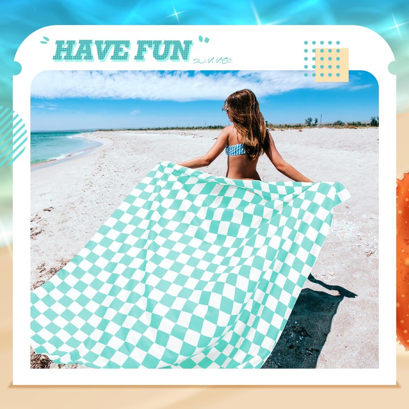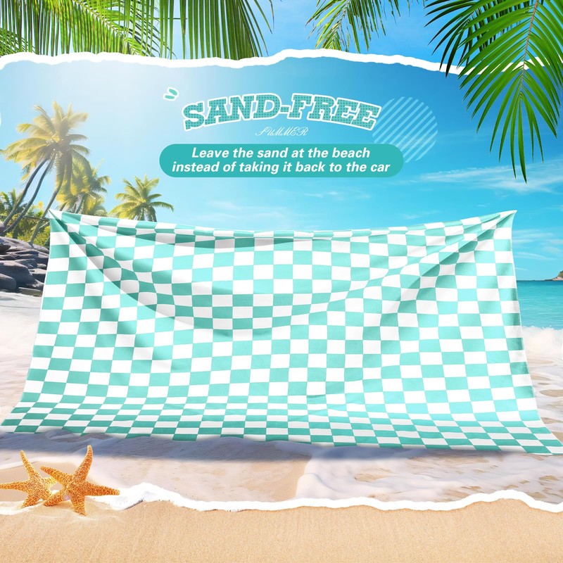 Peryiter Giant Beach Blanket 71 x 71 Inch Sand Towel XXL Checkered Microfiber Stripe Blanket Lightweight Large Huge Beach Blanket for Summer Travel Camping Hiking Picnic(Green)