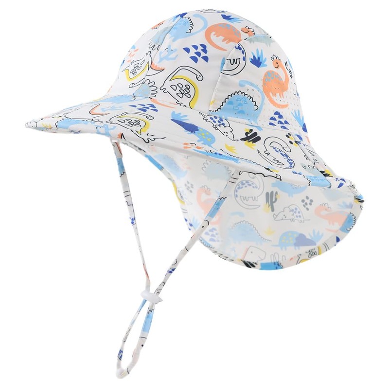 Pesaat Baby Sun Hat, for Girls with UV Protection, Sun Hat, Baby Boy, with Neck Protection, Summer Hat, Children Baby Hat, Summer - Umbrella. Dinosaur Sky Blue