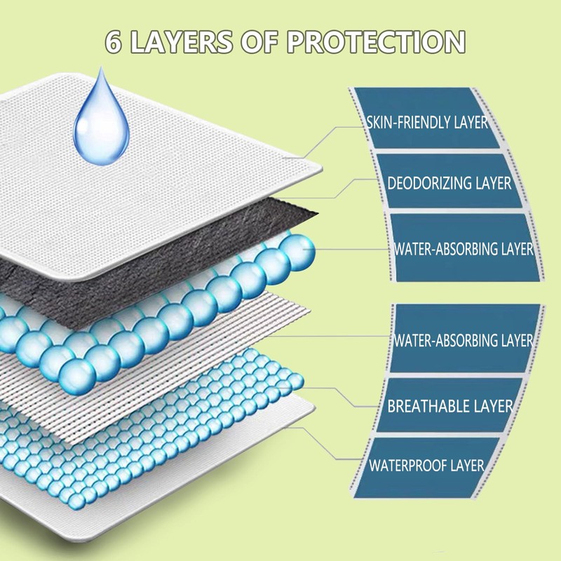 Material: non-woven fabric, carbon fibre, wood pulp, PE Leakproof film.