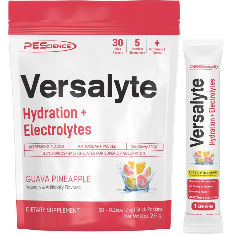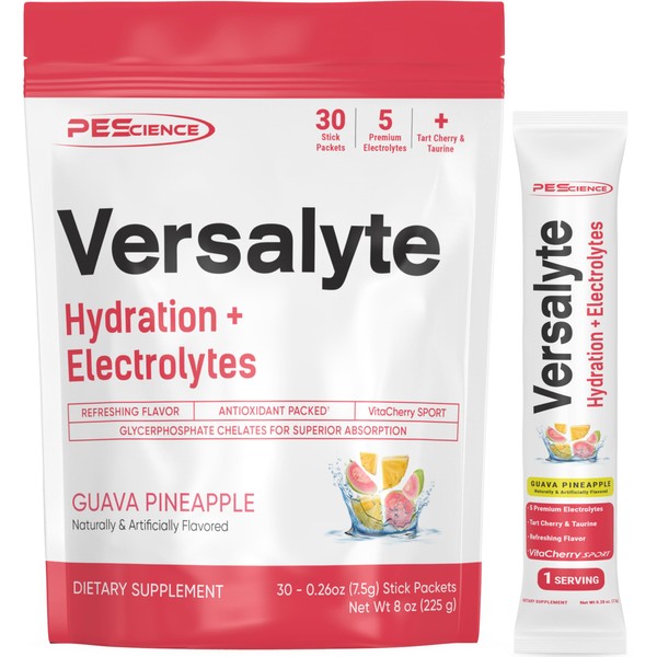 PEScience Versalyte Hydration Packets, Guava Pineapple, Sugar Free Electrolytes Powder with Magnesium, Taurine, Tart Cherry, 30 Count, Trace Minerals