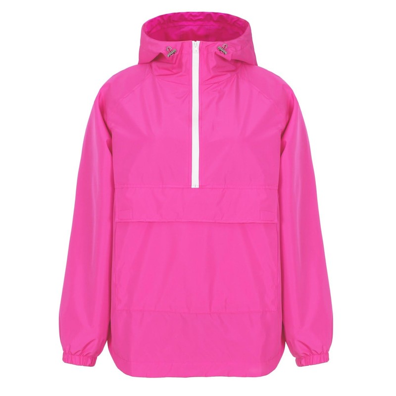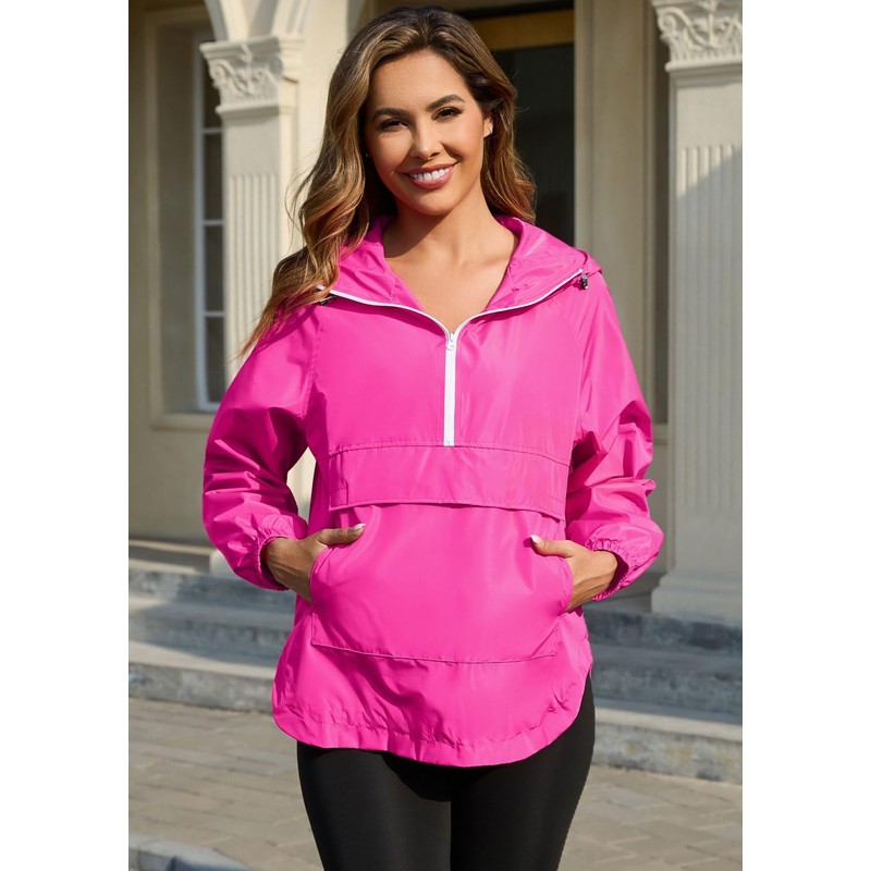 PESION Womens Packable Anorak Half Zip Waterproof Pullover Jacket, Waterproof Raincoat Lightweight Rain Jacket Windbreakers, Hot Pink, Large