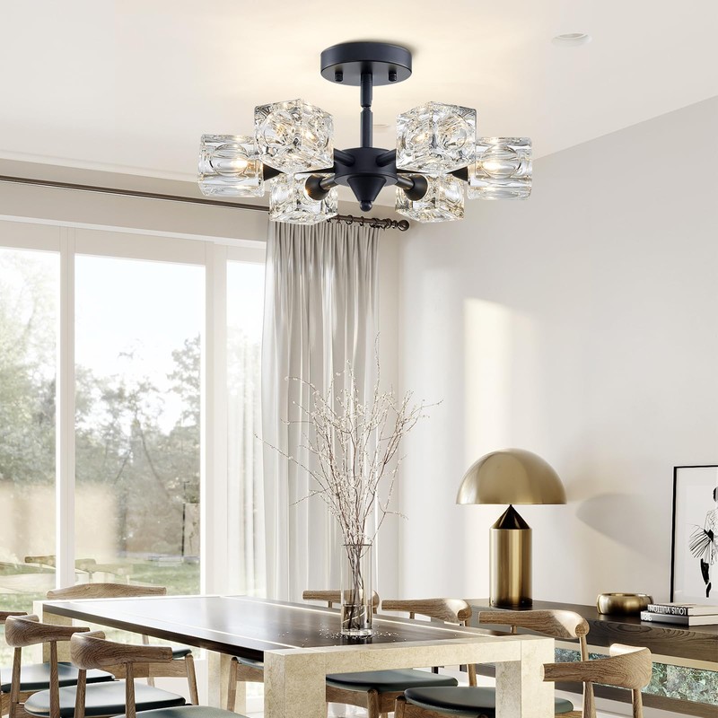 - [Uniquely Styled]: peskoe modern Sputnik pendant light, experience the perfect balance of modern aesthetics with our semi-flush mounted fixtures. 6 shades are made of high-quality clear glass, and the body of the light is made of high-quality metal. The sturdy construction and quality materials ensure that this chandelier is both durable and long-lasting, yet elegant.