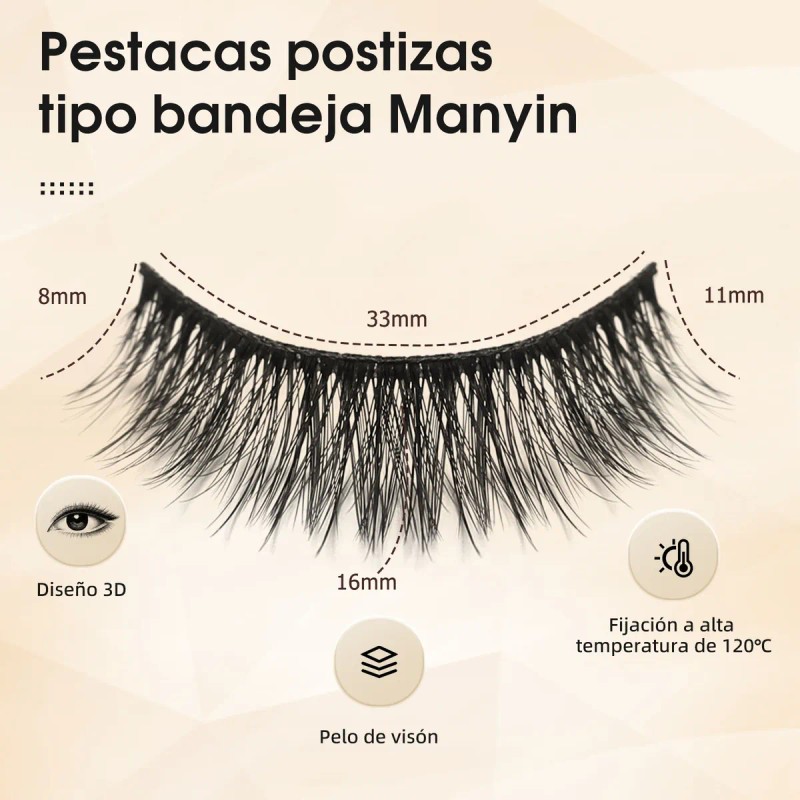 El kit de pestañas postizas Manyina está diseñado para ayudar a las mujeres a lograr una mirada natural, expresiva y radiante. Perfecto para uso diario en el trabajo o en citas románticas.