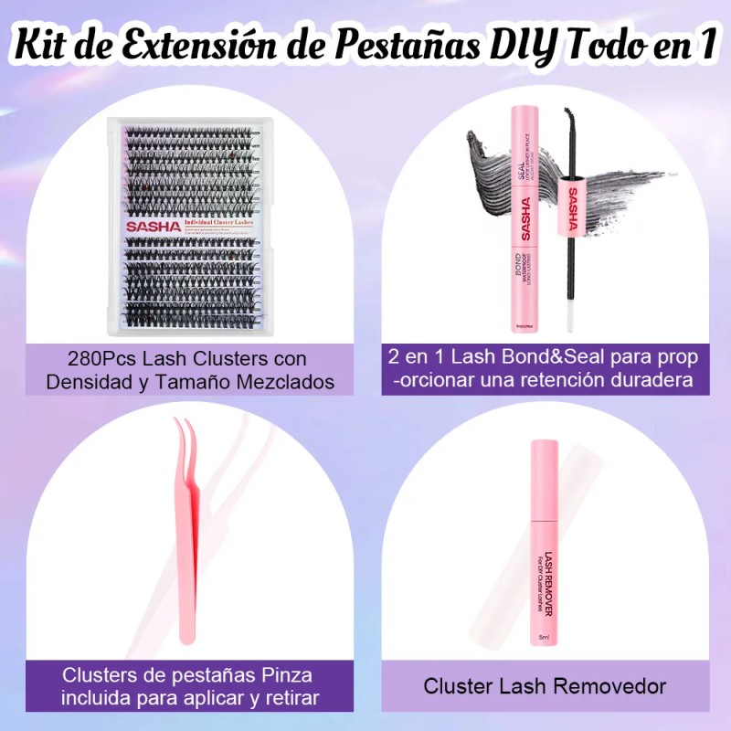 El kit de extensiones de pestañas en grupos incluye 280 PIEZAS DE PESTAÑAS EN GRUPO (30D+40D), 1 ADHESIVO Y SELLADOR PARA PESTAÑAS, 1 PINZAS PARA PESTAÑAS, 1 REMOVEDOR DE PESTAÑAS, ¡ofreciendo todo lo que necesitas para hacer extensiones de pestañas en casa! ¡Muy económico y rentable!