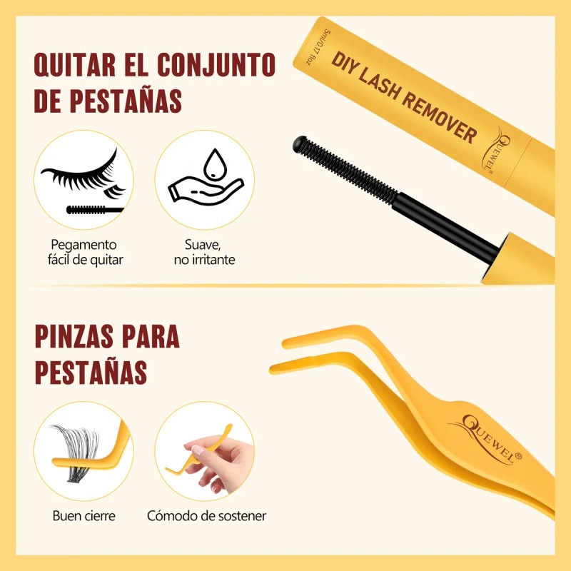 PD: Puedes usar QUEWEL REMOVER para eliminar completamente el pegamento de tus pestañas.