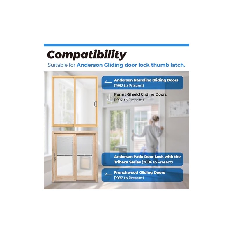 - Reemplazo del pestillo de pulgar de puerta deslizante: mejora tu puerta corredera de vidrio Andersen con nuestra cerradura de puerta corredera Andersen de repuesto diseñada específicamente para puertas correderas de patio de 2 y 4 paneles. Este pestillo de puerta corredera Andersen es perfecto para puertas de patio deslizantes estrechas, deslizamiento Perma-Shield y puertas de patio deslizantes Frenchwood fabricadas desde 1982 hasta el presente, asegurando un ajuste perfecto para su hogar.