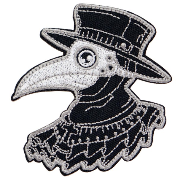 An embroidered patch designed with the face of a Pesto Doctor (Medico Della Peste).