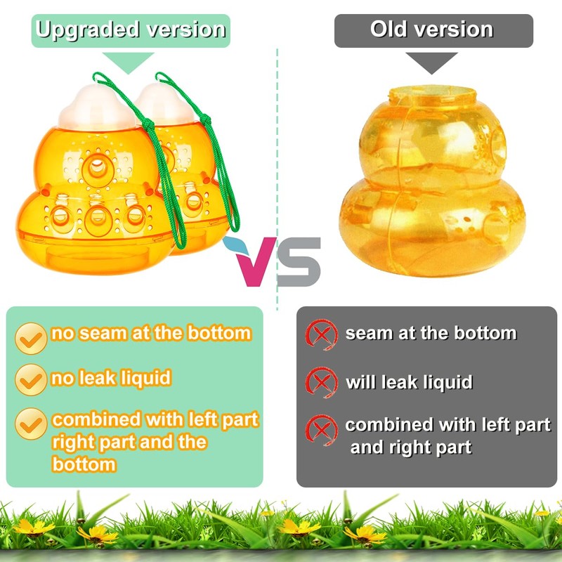 - GET RID OF WASPS SAFELY - This bee wasp traps catcher is a great solution for getting rid of wasps, yellow jackets, wasps, flies, and more insects in a safe and non-toxic way! You only need to use natural bait to trap wasps in wasp repellent outdoor, without worrying about the threat of pesticides and chemical agents to the safety of your home, pets and children. Our wasp catchers are durable enough to protect your garden, patio and more from wasp infestation from spring to fall