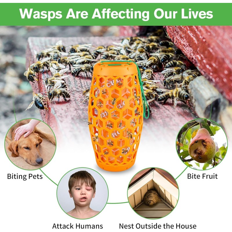 - Safe and Durable Outdoor Hanging Wasp Trap - Made from durable plastic, this trap is resistant to sun damage, making it suitable for use in various weather conditions, including heat, rain. It provides a safe solution for trapping wasps without scents. Simply hang bee trap in areas where wasps are active, and they will be attracted to it. It’s safe for your family, pets, and children