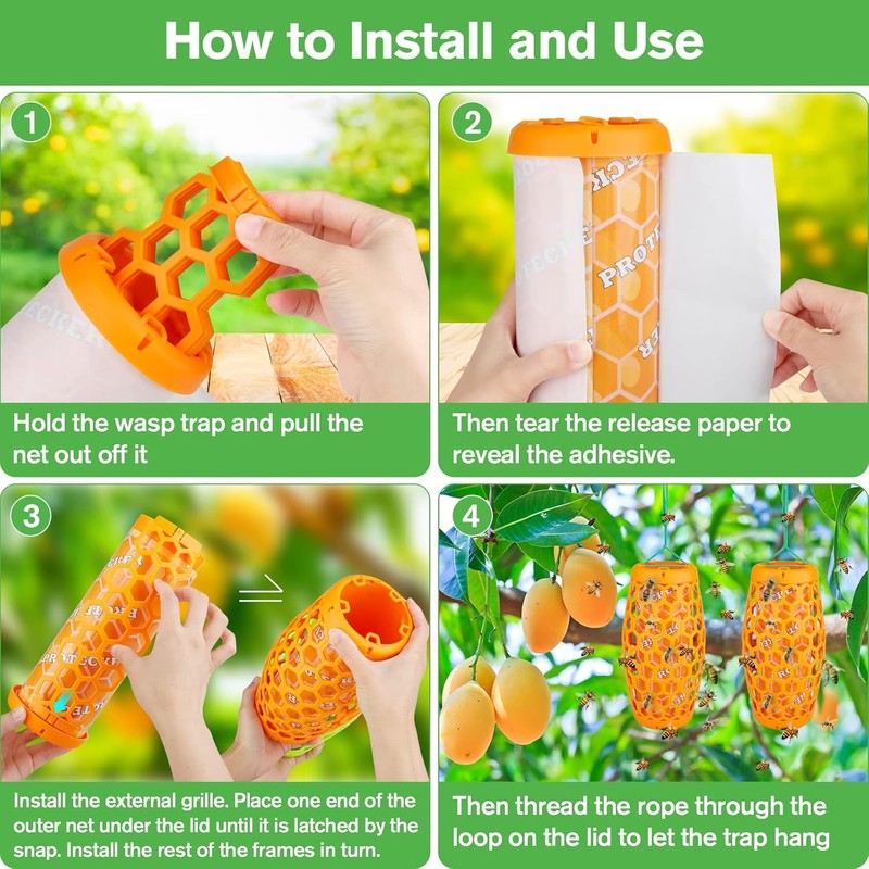 Our bee and wasp repellent trap attracts wasps with bright colors and unique patterns. Once the wasps are lured in, they will become stuck to the sticky paper and cannot escape.