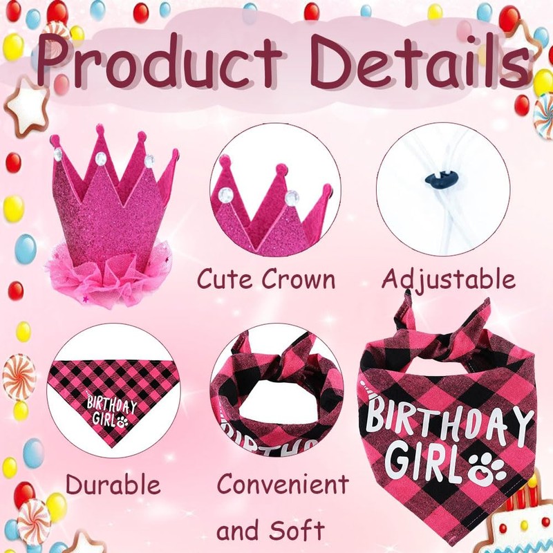 - 【Cute Birthday Decoration】The scarf is designed with a pink or blue plaid triangle scarf and is printed with obvious brithday, unique and fashionable. The hat is a paper material, very easy to assemble.