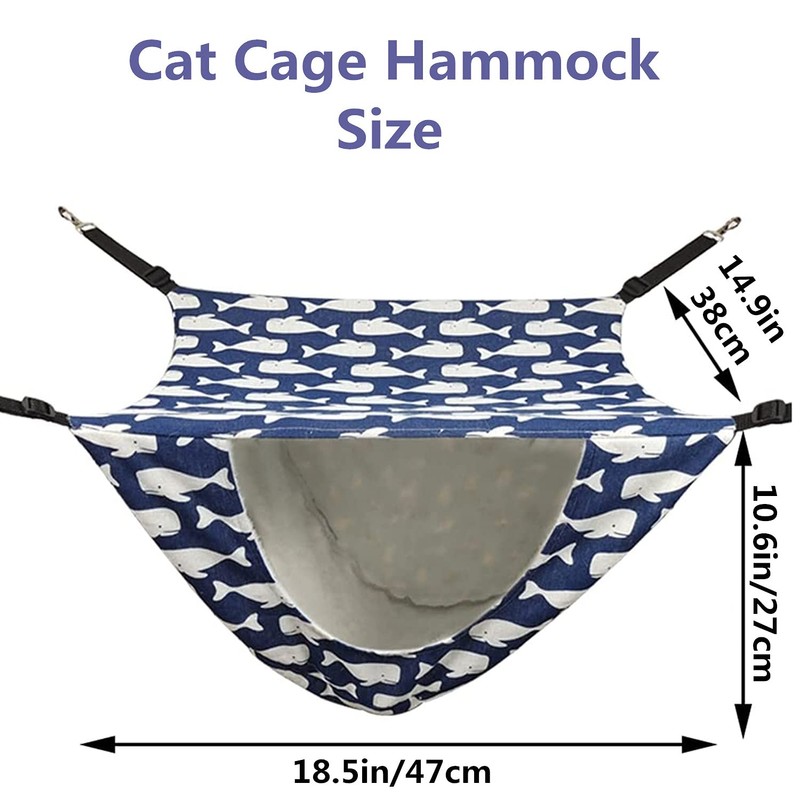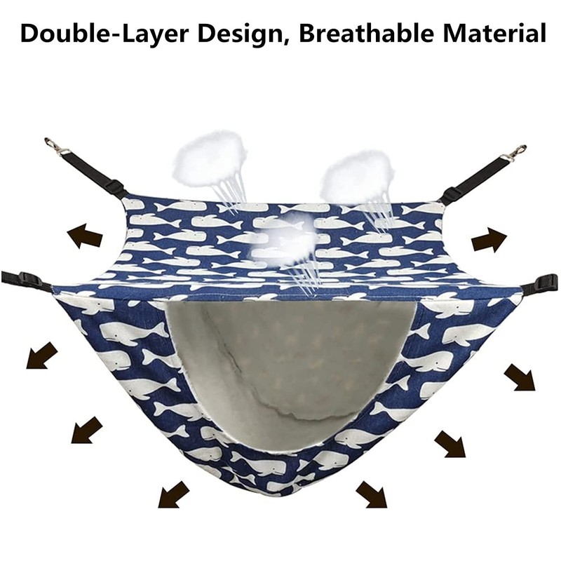 Pet Cage Hammock, 2 Tier Hanging Breathable Small Animal Sleeping Bag Cat Cage, Chair Hammock with Adjustable Belt, for Puppy Kitten Rabbit (Blue Whale)