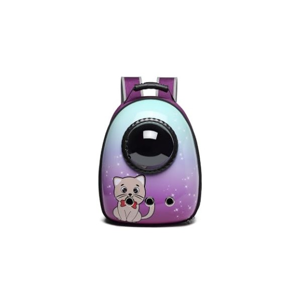 Pet Carrier Backpack with Bubble Window, Astronaut Design, Mint Purple with Cat Pattern