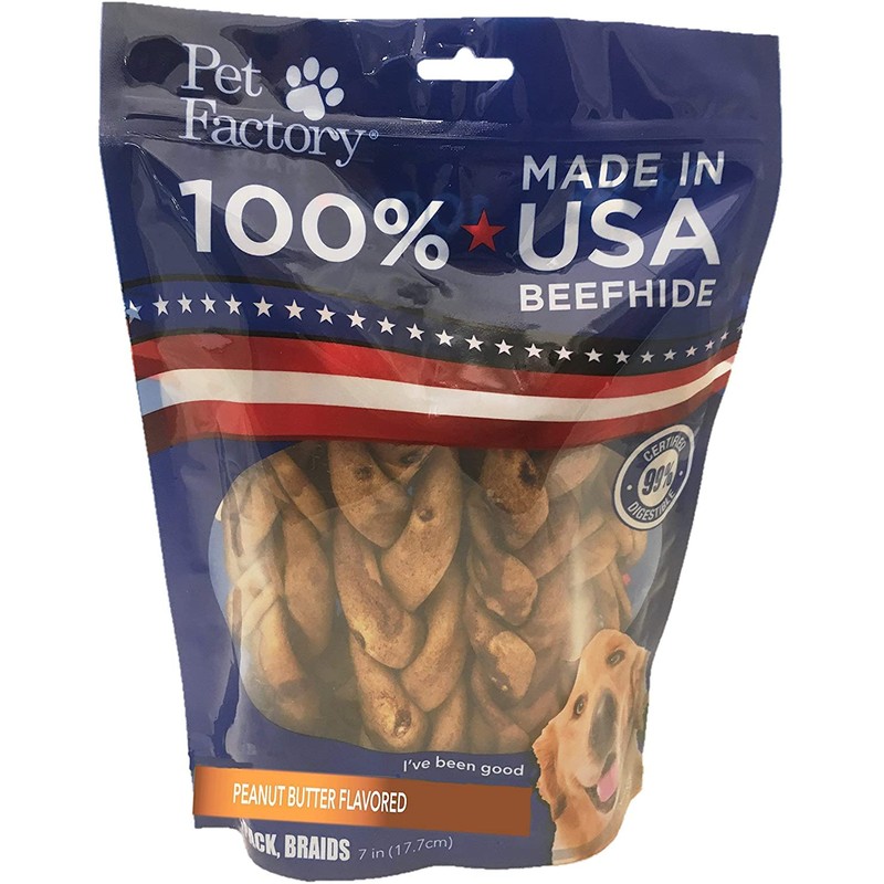Pet Factory Pet Factory 100% Made in USA Beefhide 7" Braided Sticks Dog Chew Treats - Peanut Butter Flavor, 6 Count/1 Pack