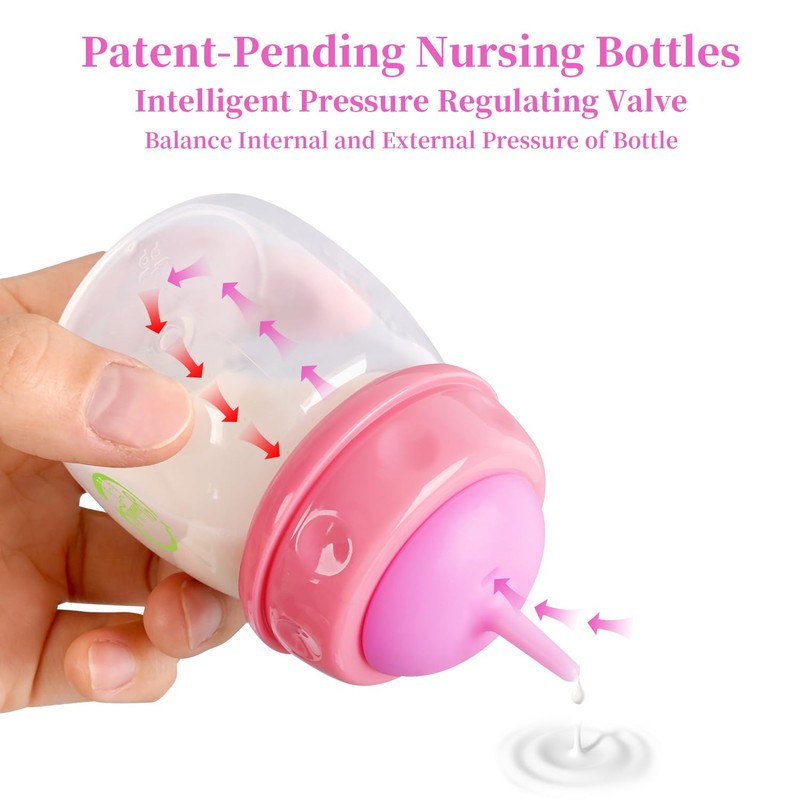 - Package: Our nursing bottle gift set contains 3 pcs bottles (60ml/2oz), 3 pcs Small/Middle/Large size yellow color nipple with intelligent pressure regulating valve, 3pcs bottle dust cover, to meet the different newborn daily feeding needs.