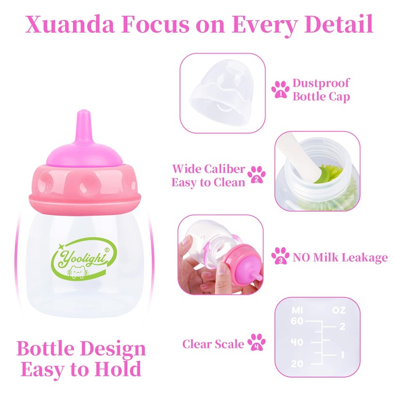 - Quality Materials: Xuanda brand nursing bottle are made of high-quality PP material,BPA-free, the cap is well sealed and will not leak, the scale is clear, could better control over the amount of milk, it is heat and cold resistant, so it can be safely stored in the refrigerator or heated.