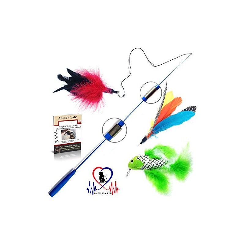 - ALL PET FIT FOR LIFE CAT TOY INTERACTIVE WANDS ARE MADE FROM SAFE, DURABLE, NON-TOXIC MATERIAL. Our 3 Piece Feather Plus Telescoping Cat Wand comes with 3 addons included so your cat has 3 toys to play with. Just unhook one and hook in another and you’re ready to play some more! Want more play options? Check out our 6 Piece Interchangeable Feather Pack for even more fun!