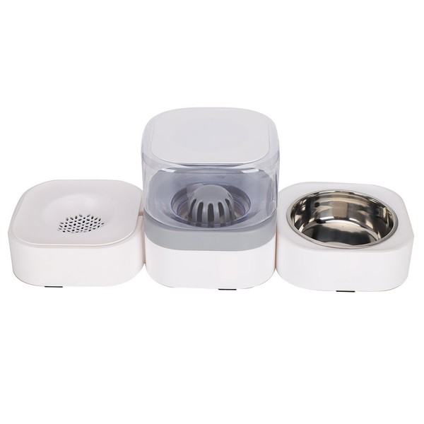 1、1.8L capacity, can meet the daily drinking needs of pets. 2、Activated carbon filter element, filter impurities in the water, let your pet every bite is fresh water. 3、Adopt the principle of absorbing rainbow, automatically add water, reduce the trouble of changing water every day. 4、There is a non‑slip mat at the bottom, which can make your pet eat and drink safely, with stainless steel bowl, easy to clean. 5、Rotary card point design, rotation is closed, firm not fall off, easy to install. 6、Variable modeling, optional combination, suitable for all kinds of furniture environment.