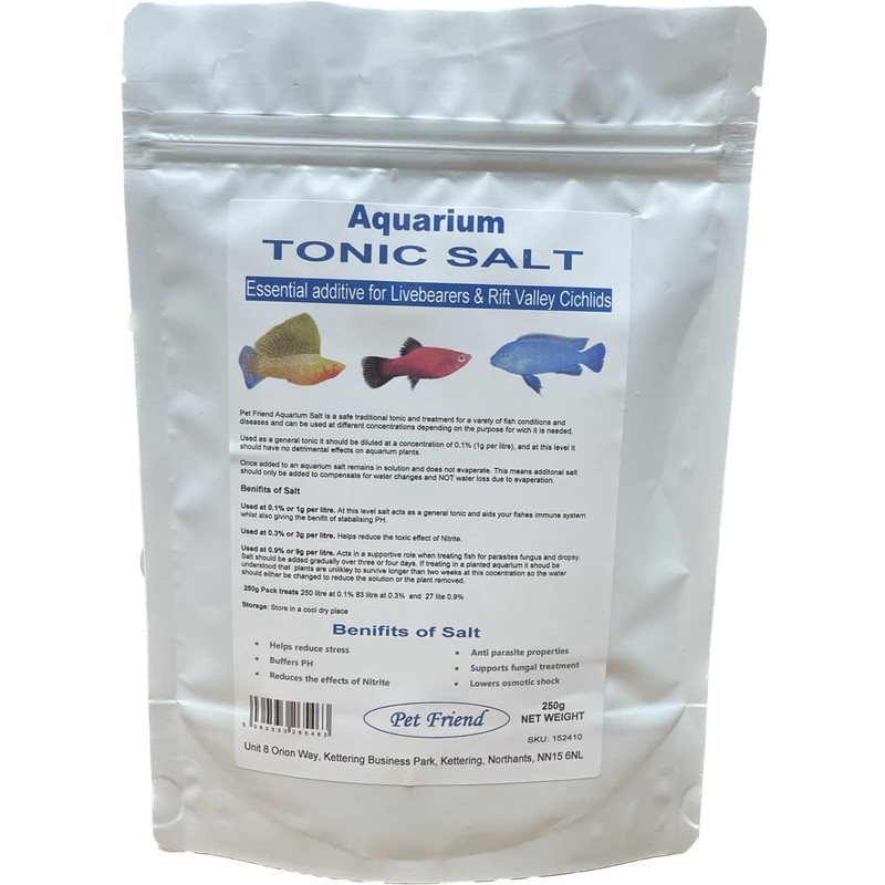 - ESSENTIAL ADDITIVE FOR LIVEBEARERS & MALAWI CICHLIDS especially those living in coastal regions and hard water areas. Salt helps buffer and stabilise the PH helping prevent acidic water conditions that would be detrimental to health.
