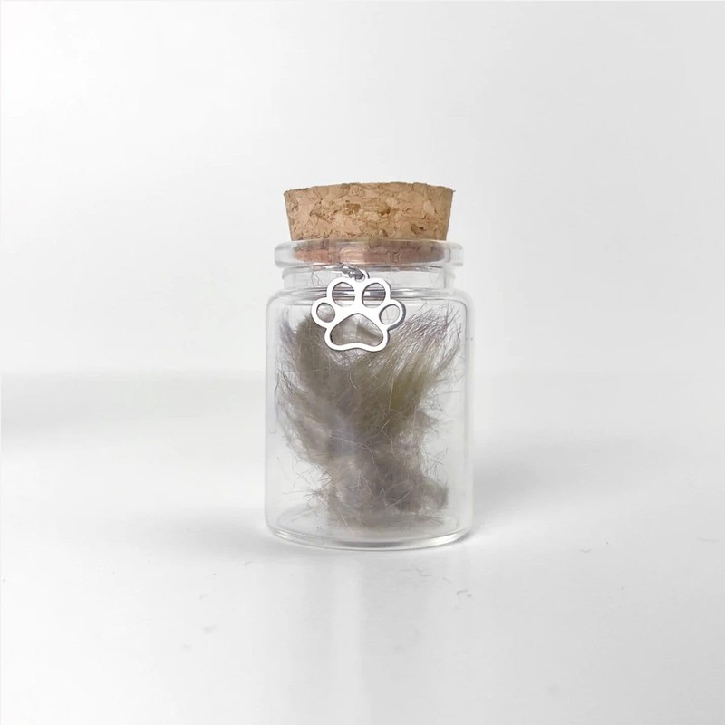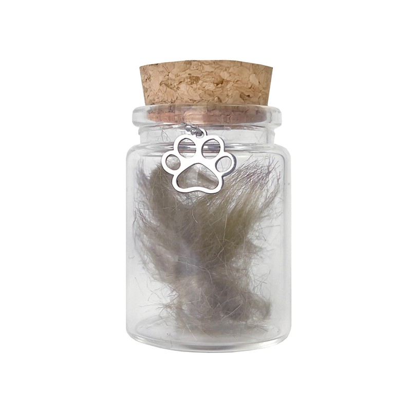 Our keepsake bottles are perfect for fur and hair from dogs, cats, horses, and small mammals. The versatile design allows you to remove the pawprint charm if not applicable to your pet.