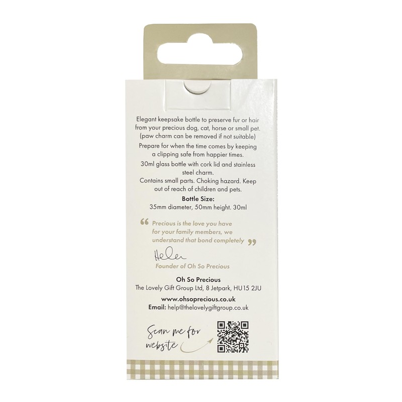 Preserve the memories and keep the spirit of your beloved pet alive with our Pet Fur & Hair Keepsake Bottle.