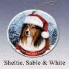 Holiday Pet Gifts Sheltie Santa Hat Dog Porcelain Christmas Tree Ornament