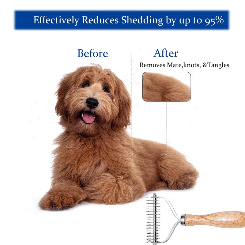- ✅【Double-wide Undercoat Rake for Dogs 】17 double-sided blades, safe and durable.