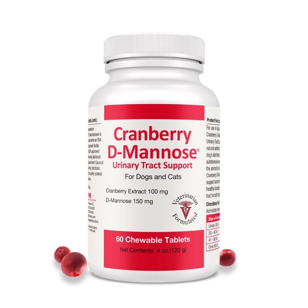 Pet Health Solutions Cranberry D-Mannose Urinary Tract Support - Bladder Health Supplement for Dogs and Cats - 60 Tablets
