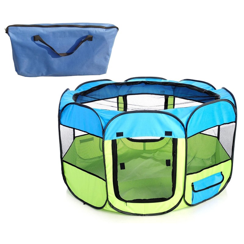 - This Travel Dog Playpen is also great for Cats and Small Animals. Features 8 surround Mesh Windows for Complete Breathability and Visibility with a Zippered Roll-Up Mesh Entrance and a Circular Mesh Zippered Top that can be used as an Entrance for pet placement and to properly Secure your pet