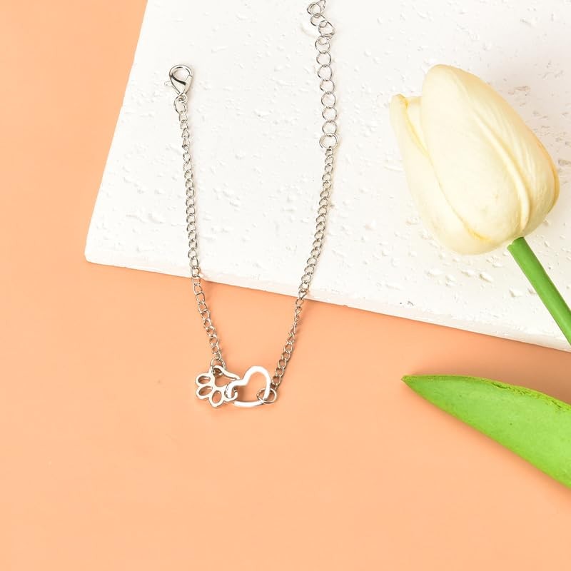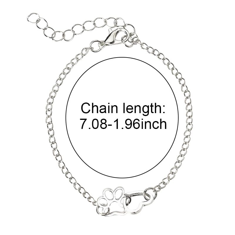 - Delicate Dog Cat Paw Print Bracelets Gift: The dog paw print lies in the center of the dog bracelet, links to a love heart on its left, which means your furry pet always exists your hearts, when you wear the paw print charm bracelet, you will feel that the sincere love of your favorite pet is going into your heart and will keep forever