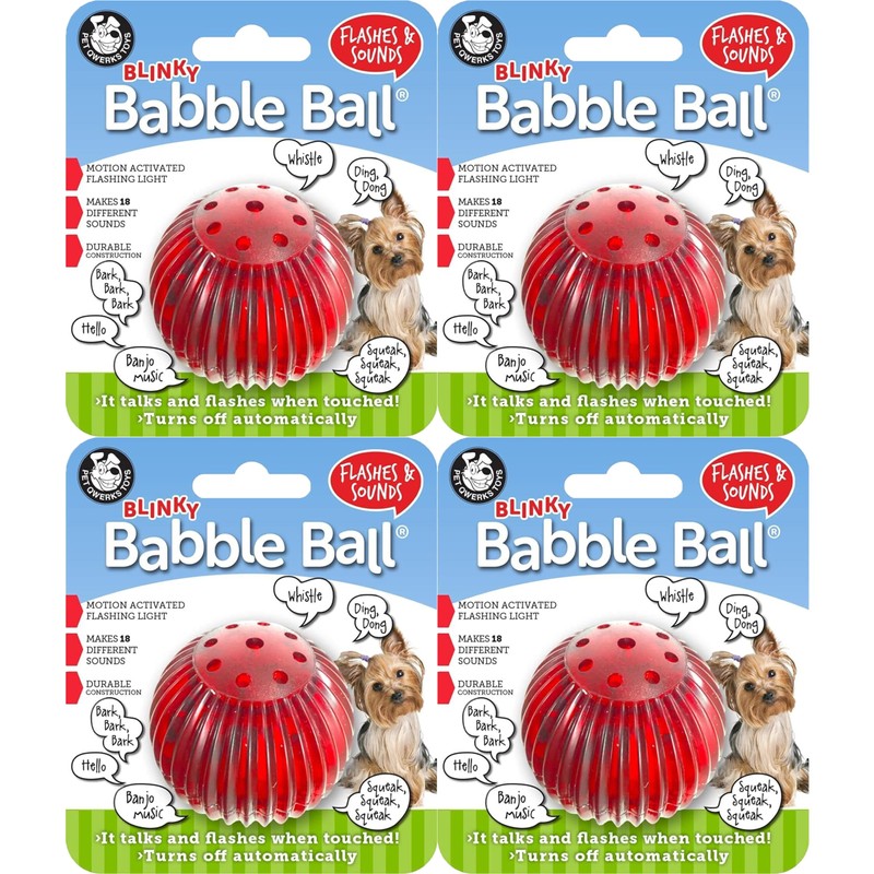 Pet Qwerks Blinky Babble Ball - Flashing Interactive Chew Dog Toy, Small, 4 Pack