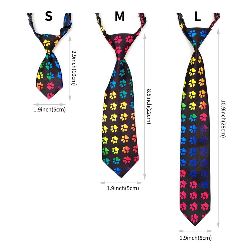 Neckline: S: 10.6-17.3 inches; 27-44 cm; M: 13.4-22.4 inches; 34-57 cm; L: 13.8-23.6 inches; 35-60 cm. The adjustable collar size can fit for most pet necklines. Please measure your pet's neckline before ordering to make sure the neck ties can fit your pets well.