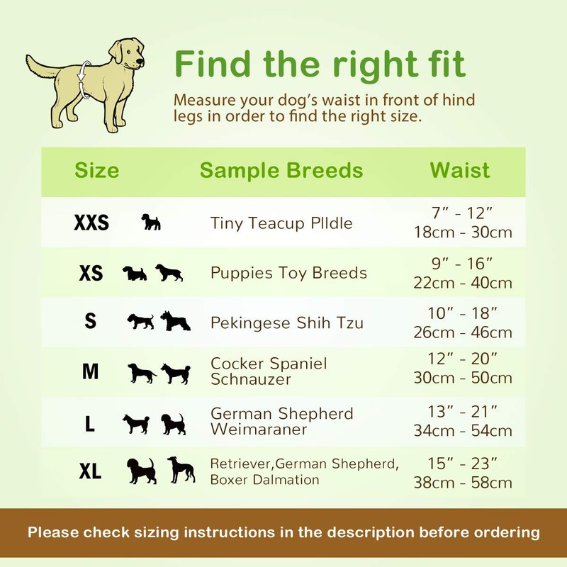 - Pet Soft dog nappies for female dogs: Pet Soft disposable dog nappies XXS are suitable for dogs with a waist of 18-26 cm (6.3-10.2 inches) and a weight of 1-2 kg (2.2-4.4 lbs). If you measure your pet correctly and choose the appropriate size, these nappies fit many dog breeds, even difficult body shapes such as cats, dachshunds, yorkies, pugs, French bulldogs, bulldogs and tailless breeds.