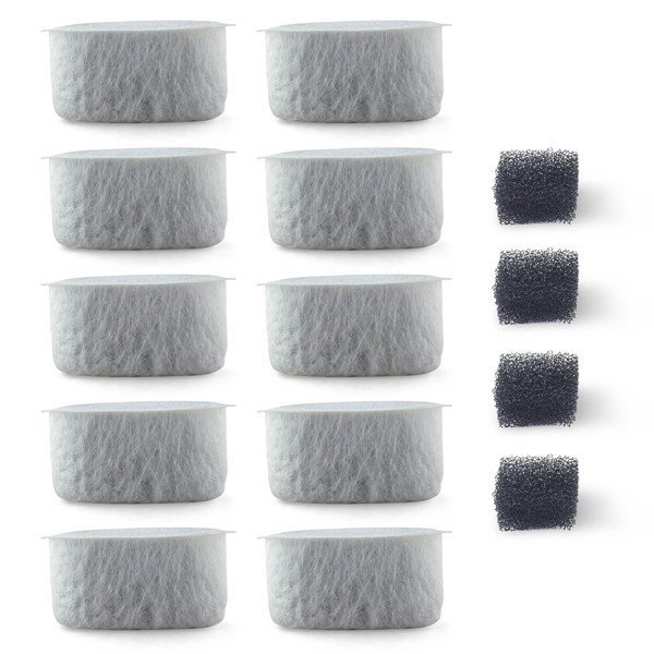 - [Premium 10 Pack Pet Fountain Filters] Pack of 10 Filters and 4 Replacement Pre-Filter Sponges