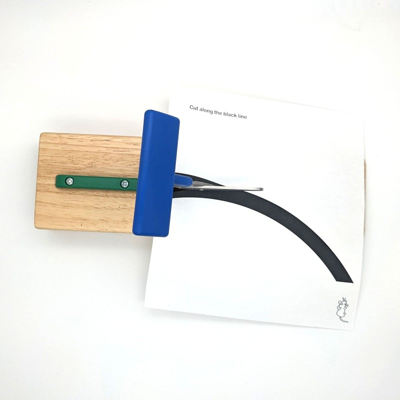 The hidden spring will automatically reopen the blades in readiness for the next cut. It is often advantageous to use the more dextrous hand to manipulate the paper whilst the more affected hand works the scissors.
