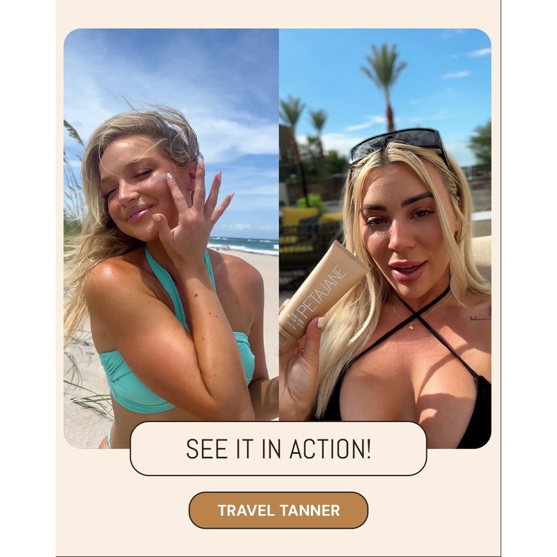 Peta Jane Travel Tanner, Self-Tan Lotion | Natural Sunless Tanning Lotion, Lightweight & Streak-Free Finish, Not Sticky, Lengthens Tan, 3.4oz - Best Self-Tanning Lotion for Flawless Glow