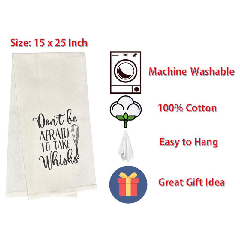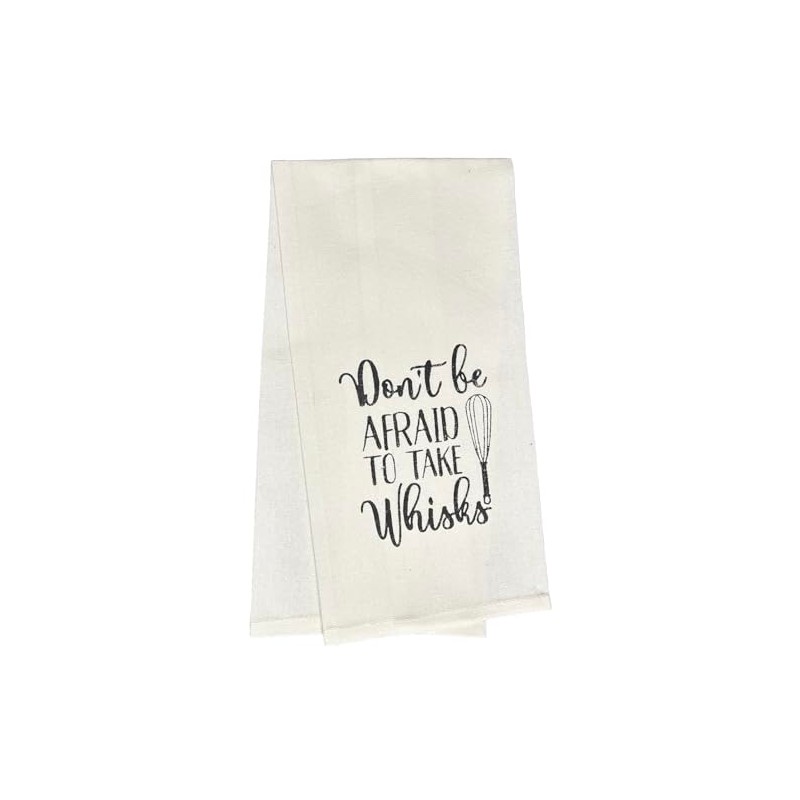 Petal Cliff Don't be Afraid to TAKE Whisks. Two Pcs 100% Cotton Funny Cute Saying Flour Sack Kitchen Towels Size: 15 X 25 Inch.