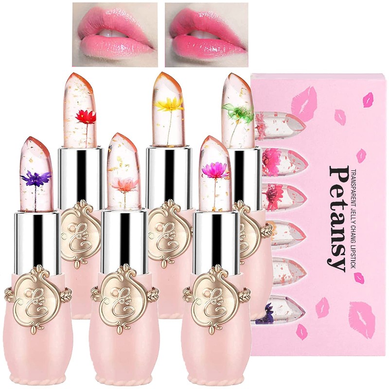 Petansy 6 Pcs Crystal Jelly Flower Nutritious Temperature Changing Lip Balm Long Lasting Moisturizer Lip Gloss Magic Color Changing Lipstick Set