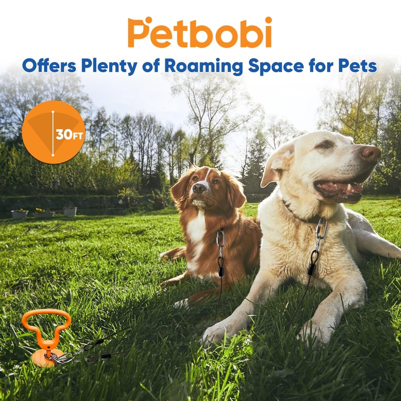 - 30ft Freedom for Outdoor Adventures: Give your fur-baby room to roam! Petbobi extra strong dog tie out cable extends 30ft with a 16.5" heavy duty ground stake. Perfect for backyard playtime, camping trips, or park outings. Let your dog safely explore while you relax-everyone wins!