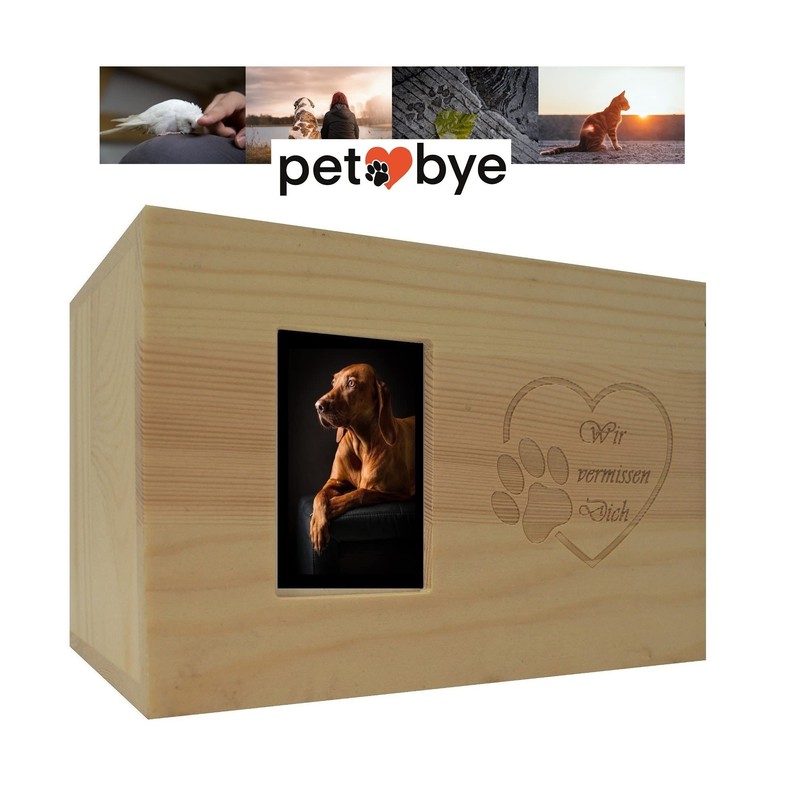 petbye Wooden Pet Urn with Photo Frame - 16 x 11 x 11 cm Natural Decorative Real Wood Ash Urn for Pets Dogs Cats with Paws Engraving and Space for Photo P-14929